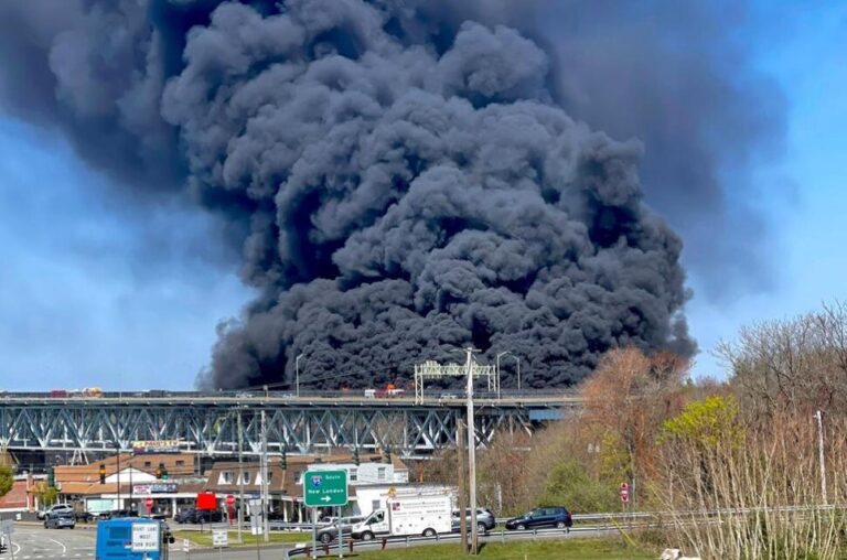 “This was a tragic accident at 11:15 this morning,” Lamont said. “It looks like a passenger vehicle tire blew out, creating an incident” with the truck, which tipped over, he said. “Billowing smoke, incredible flames, pouring right down through the pipes, spilling out into the Thames River.”