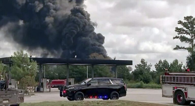 HOUSTON — A huge fire at a chemical plant in rural Texas on Nov. 8 sent a plume of black smoke into the sky as officials closed down a local highway and ordered residents to take shelter for several hours.