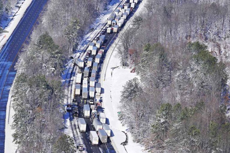 ALONG INTERSTATE 95 — A truck driver, stranded along a snow-covered, 50-mile stretch of Interstate 95 on Monday and Tuesday, became a lifeline for some hungry motorists by offering them breakfast Tuesday morning.