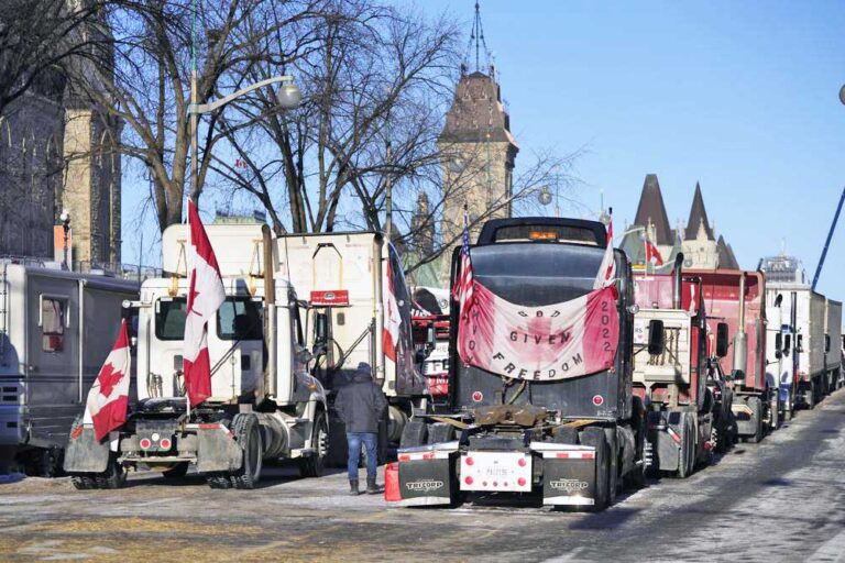 Since late January, protesters in trucks and other vehicles have jammed the streets of the capital and obstructed border crossings, decrying vaccine mandates for truckers and other COVID-19 precautions and condemning Trudeau’s Liberal government.
