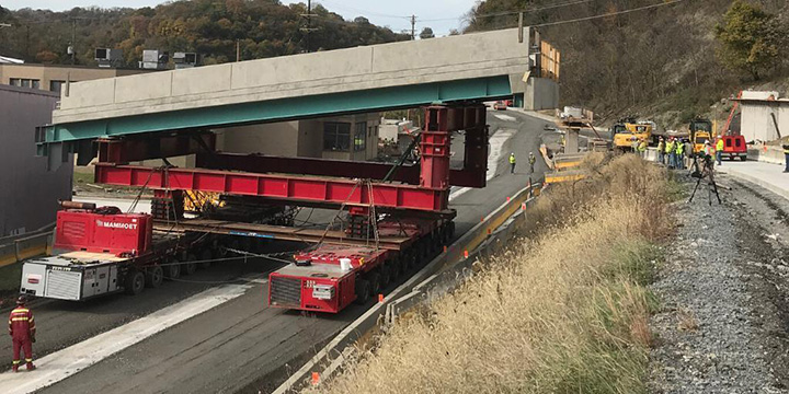 The Shaler Street Bridge Replacement project marked the first use of self-propelled modular transporters (SPMTs) in Pennsylvania. This technology allowed the department to replace the Shaler Street Bridge over busy Route 19 in Allegheny County over the course of two weekends.