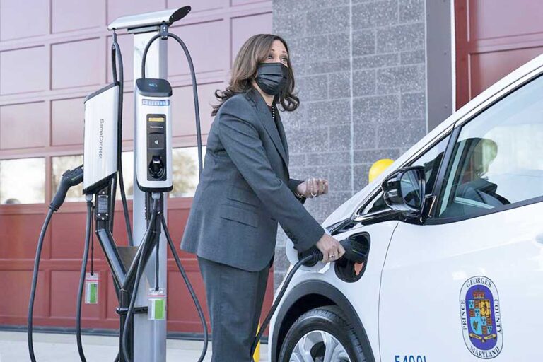 “The future of transportation in our nation and around the world is electric,″ Vice President Kamala Harris said at an EV charging facility in suburban Maryland on Monday. “We want to make electric vehicles accessible for everyone. Absolutely make it accessible for everyone and easy. Just like filling up your car with gas.”