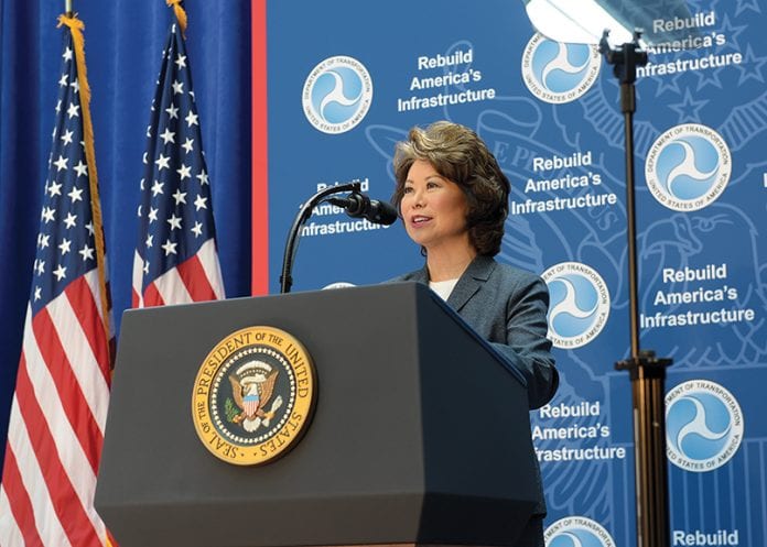 WASHINGTON — U.S. Secretary of Transportation Elaine Chao announced today (Jan. 7) that she is resigning from her post as the head of the nation’s Department of Transportation effective Monday, Jan. 11.