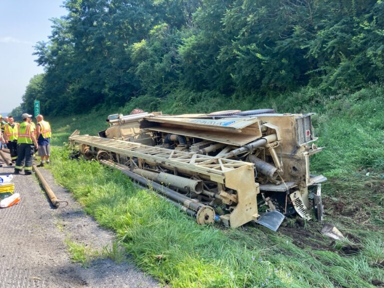 The truck lost control, and swerved off the right side of the highway. It continued traveling northbound and went up a steep grass embankment and rolled into a ditch. Upon impact, pipes and other well drilling equipment fell off and landed on both northbound lanes.