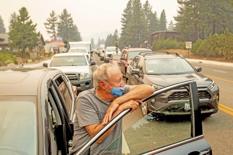 The city of South Lake Tahoe, usually bustling with summer tourists, was eerily empty and the air thick and hazy with smoke from the Caldor Fire, one of two major fires burning in the same area. On Monday, roughly 22,000 residents jammed the city’s main artery for hours after they were ordered to leave as the fire advanced, chewing up drought-stricken vegetation.