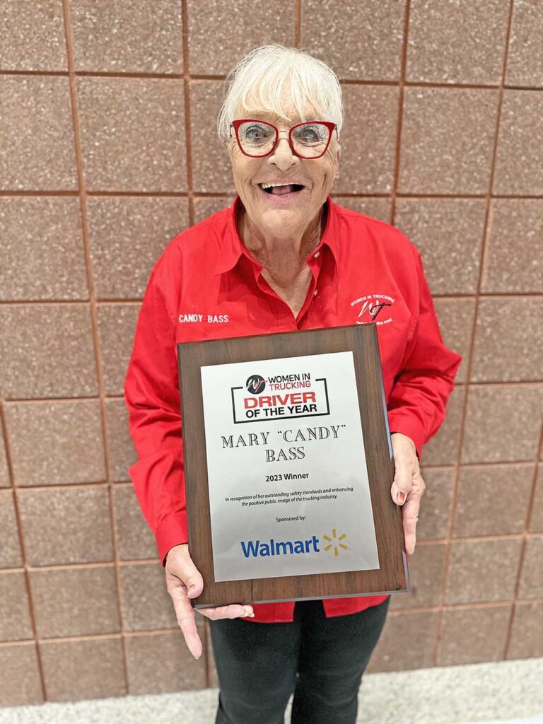 “Our North Star is to create a culture where our associates feel like they belong. That means getting to know them for their own unique identities, styles, experiences, abilities and perspectives to support them best,” Erin Bergman, director of talent acquisition at Walmart, said. “That’s why Walmart is proud to sponsor the Women In Trucking Driver Of The Year Award since it was created. It’s important to celebrate the industry’s top women behind the wheel like Mary ‘Candy’ Bass, who has had an incredible 50-year career and is paving the way to show future generations what they can accomplish when they work hard at what they love.”
