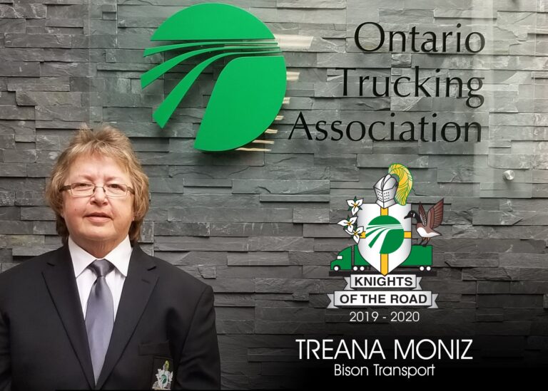 Despite the touches of home in her truck, Moniz is all business when it comes to trucking. She’s earned a long list of accolades for her work behind the wheel and out of the cab as well. She’s currently a member of the2019-2020 Ontario Trucking Association’s Road Knights team and was selected as a Women in Trucking 2018 Canadian Image Team Member. She’s racked up several Driver of the Month awards at Winnipeg, Manitoba-based Bison Transport, as well as Eastern Company Driver of the year last year. And, she was Women in Trucking’s choice for May 2019 Member of the Month.