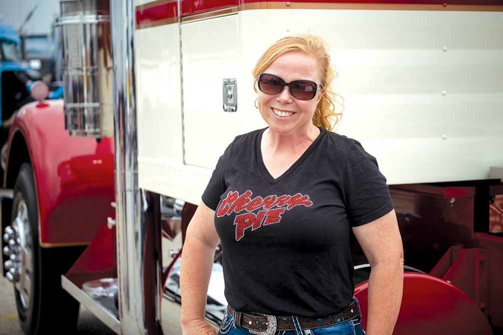 At 47, Whiting isn’t old enough to have been an authentic hair band headbanger back in the day, but the music isn’t about her, anyway. It’s the anthem for her truck, a 1973 Kenworth 900A long hood, dubbed “Cherry Pie.”