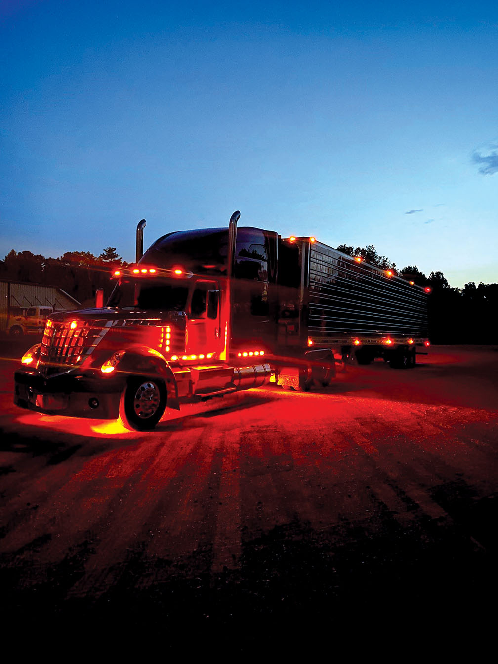 “I always had Freightliners. My first was in 2001, my second one was in 2002; got another in 2012 and in 2015,” he said. “I was just ready for something different. I’m not a Peterbilt man at all and Dana goes, ‘Have you seen the [International] LoneStar?’ I go, ‘Yeah, I’ve seen them on the road.’ She goes, ‘It looks like a train.’ I go, ‘To me, it looks like a 1938 Ford in the front end.’”
