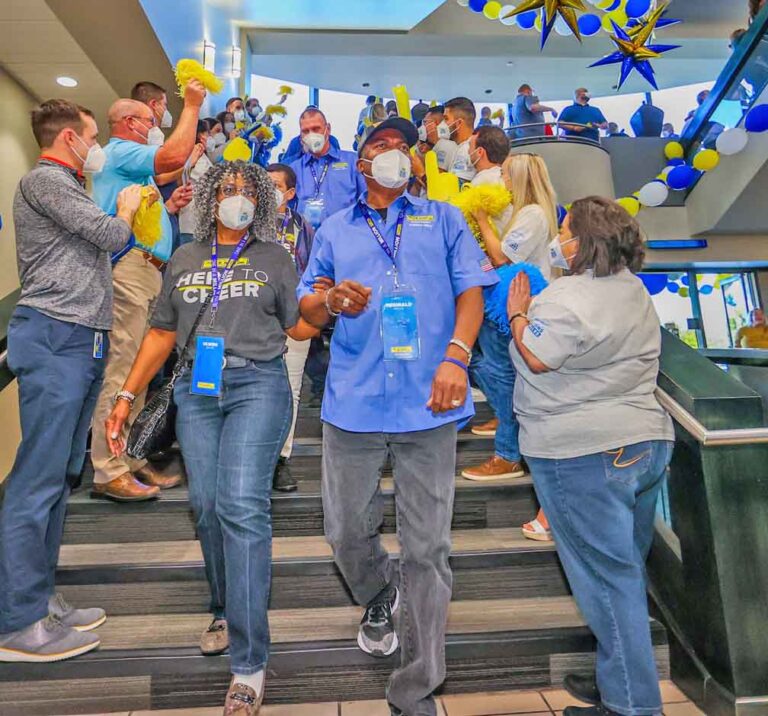 To commemorate the milestone, J.B. Hunt drivers and employees participated in the Million Mile Walk of Fame, an annual company tradition. The million-mile drivers descended four flights of stairs lined with employees greeting them with cheers and applause to express appreciation for their safety efforts.