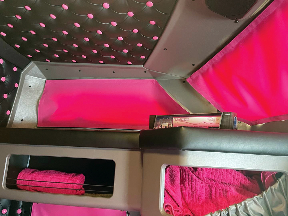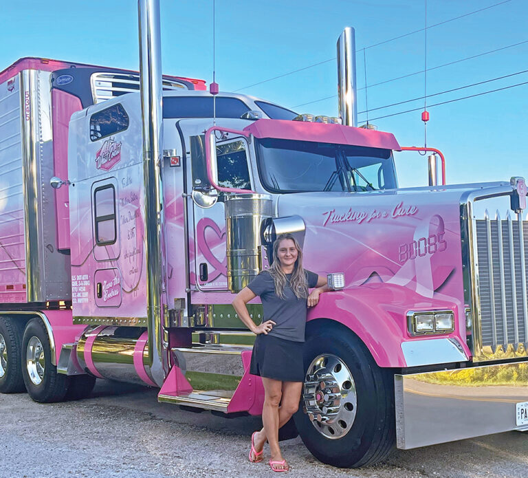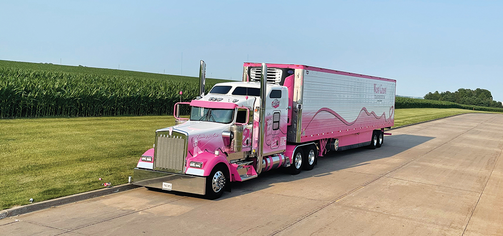 “When I first started driving for West Coast, I was just driving one of the regular white Peterbilt Type 79 Ps with burgundy fenders. But inside, I had everything pink,” she added. “My covers were pink, floormats, steering wheel. Everything was pink. Nobody else wanted to drive it because it was too much pink, but I didn’t care what anybody said.”