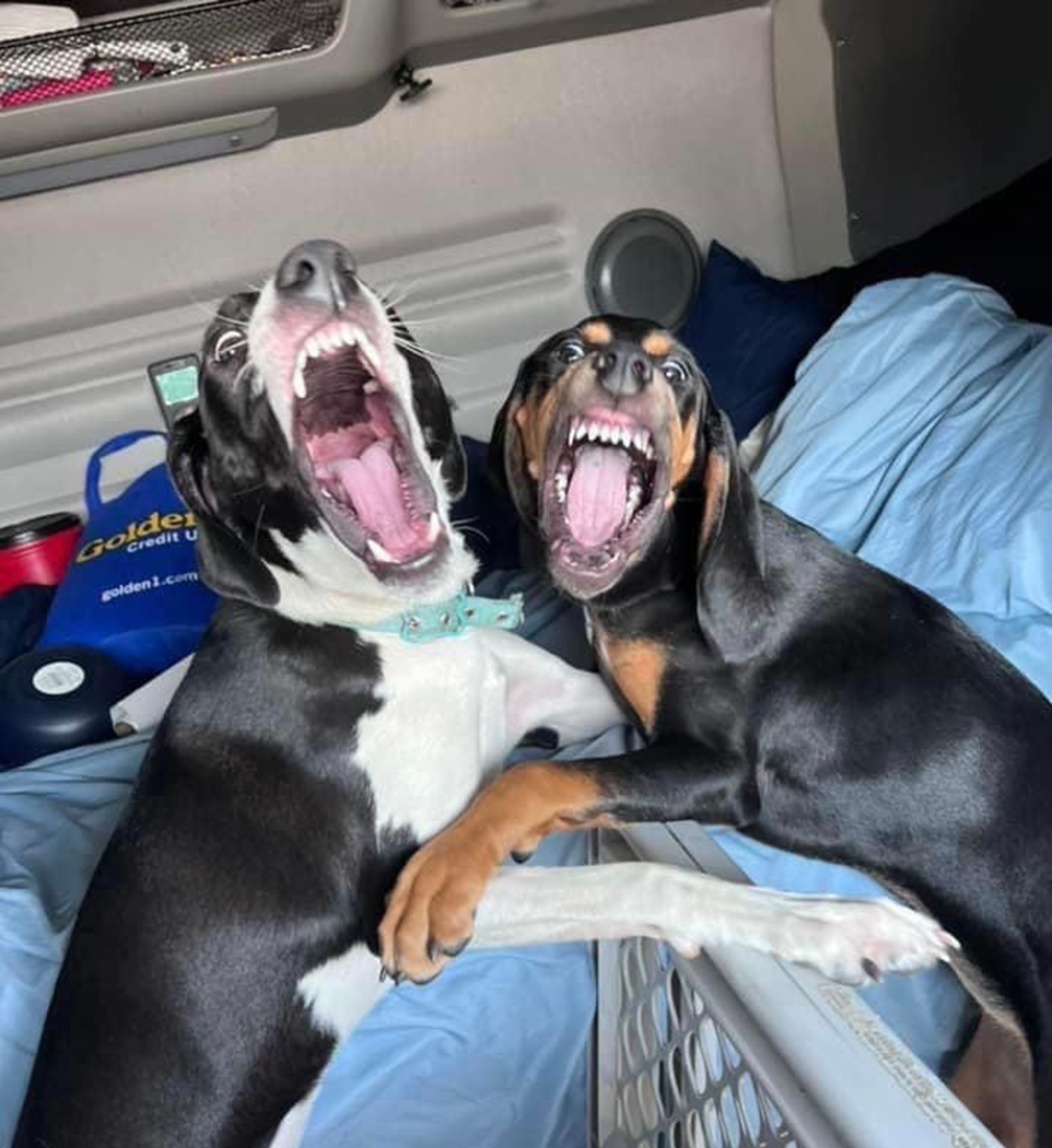 Eyler, who’d never owned a dog before, said there have been other adjustments, such as getting used to barking or the other shenanigans the furry family members pull while en route. But, he said, it’s not without its payoffs, either.