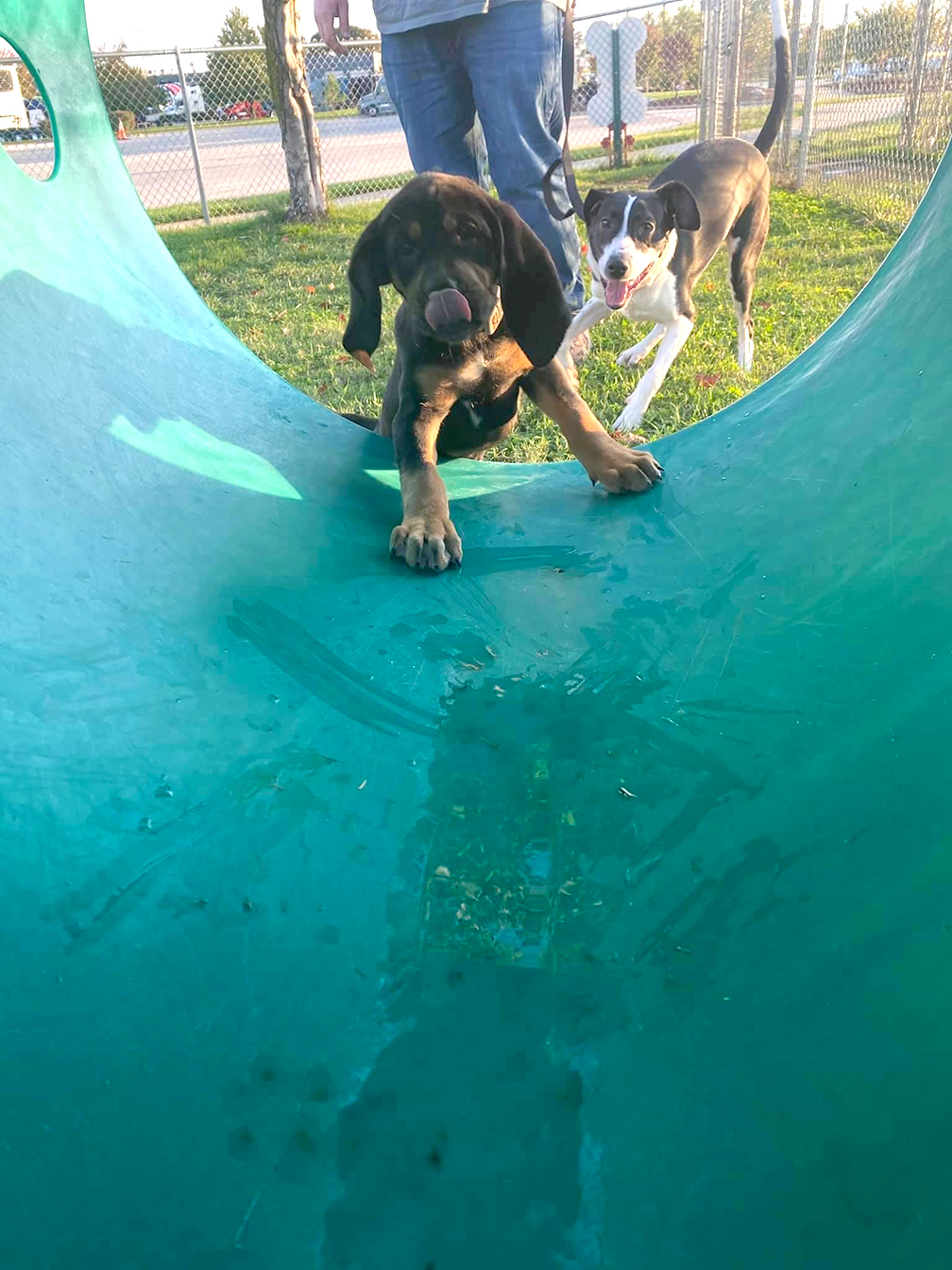 Enter Gidget, in September 2021. This California girl is the product of a full-blooded bloodhound and blue tick coonhound — and she has the pitch-perfect vocal pipes to prove it. It was love at first sight between the two fluffers, even if it meant Diesel forfeiting any notion of being leader of the pack.