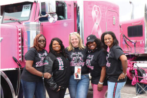 Driving a truck that raises awareness of breast cancer is important to Cox because of the impact the disease has had on her friends. Marleen Burgess, the woman who served as Cox’s mentor when she entered the trucking industry 33 years ago, is a breast-cancer survivor, and Cox’s mother’s best friend also battled breast cancer. In addition, Cox said, her daughter had a best friend whose mother died from breast cancer.