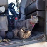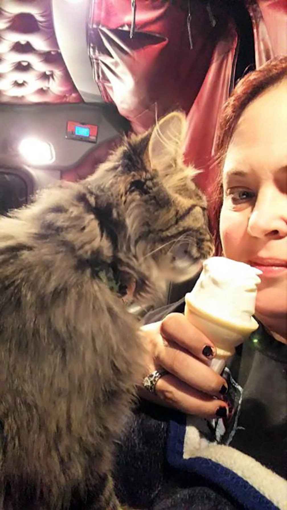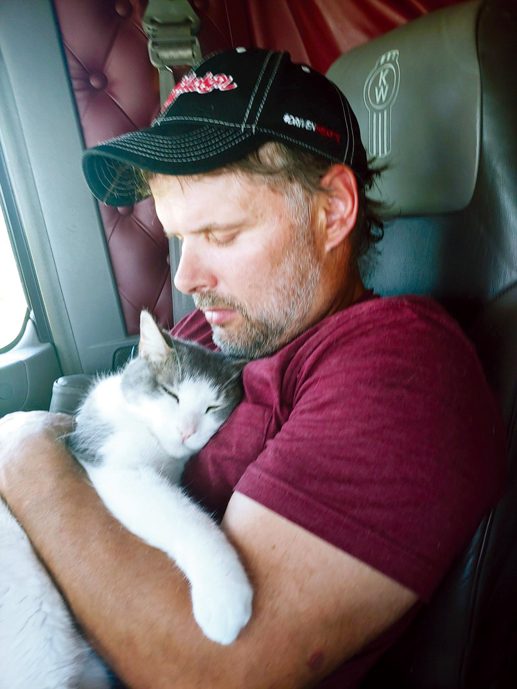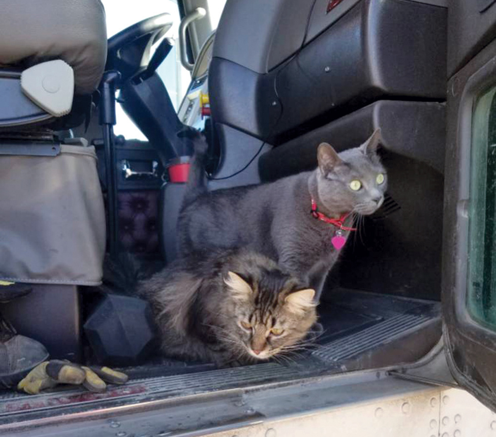 The couple laughs over those pre-feline days now, and with good reason. The couple has a total of seven cats. While usually there are only a couple along for any given ride, there have been periods in their relationship where as many as five felines made themselves at home in the cab.