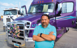 Dawson leases his 2020 Freightliner Cascadia, nicknamed “Roll of the Dice,” from Pro Transport.