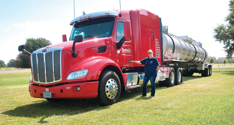 By the time she left, McKenna was a seasoned pro. She then spent 10 years driving for a grocery chain, where she got her first experience hauling liquids, and then she drove for Walmart. By the early 1990s she was burned out on East Coast traffic and seeing the same scenery, so she relocated to Texas. There, she landed with outfits that started sending her to places she’d never been. By the time she joined Clean Harbors in 2013, she’d hit 47 of the lower 48 states.