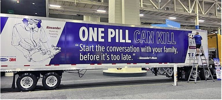 Through this united effort, trucking companies have the opportunity to purchase trailer wraps with fentanyl public service announcements featuring messages from families who have lost loved ones to illicit fentanyl poisonings.