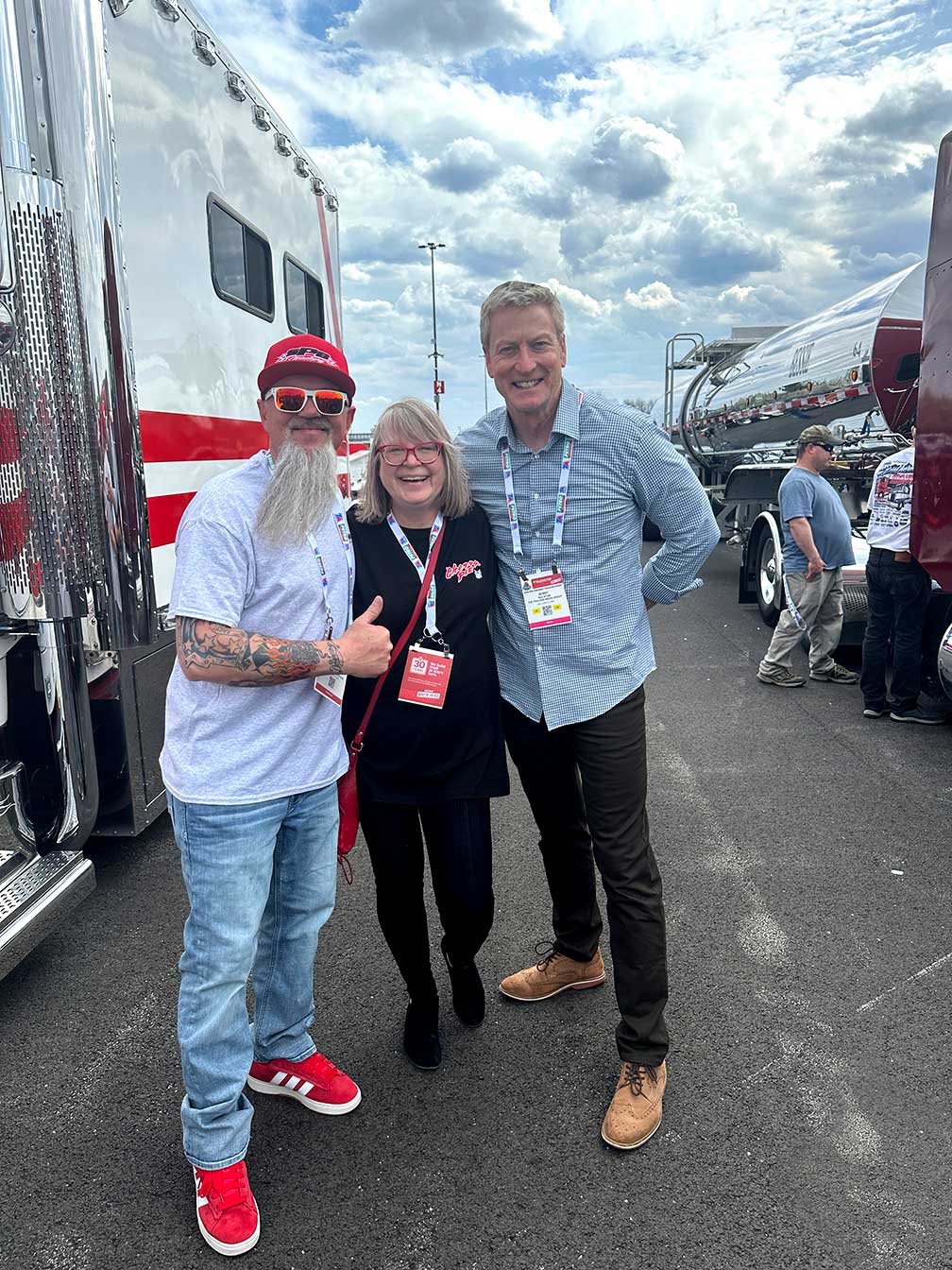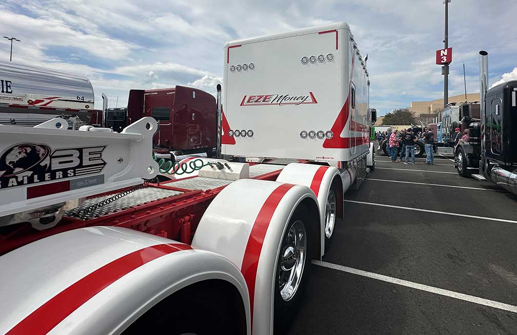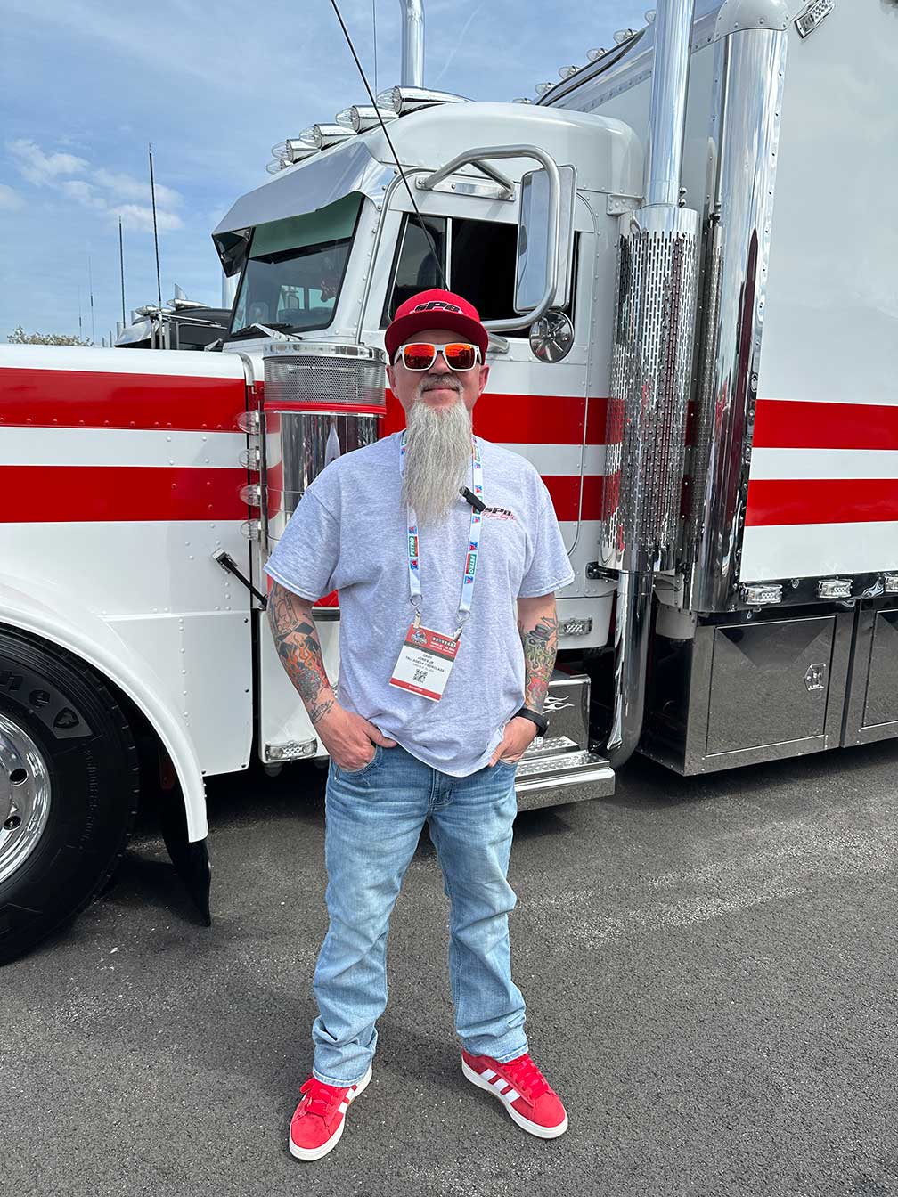 He shares his love of trucking by the way he conducts his business, with his show trucks and through his social media advocacy for the trucking industry and his fellow drivers.