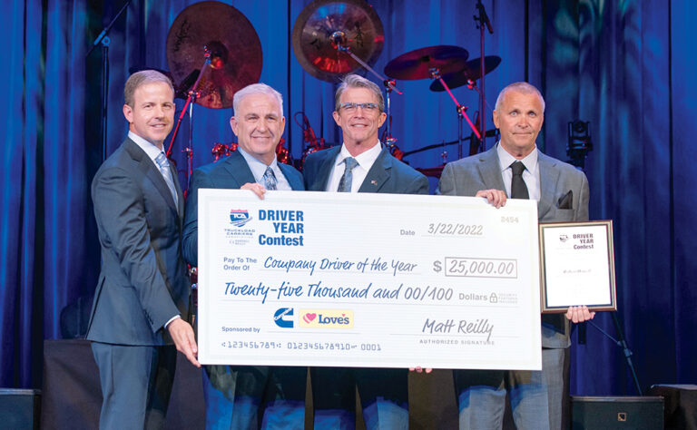 TCA, along with partners Overdrive and Truckers News, teamed up with long-time sponsors Cummins and Love’s Travel Stops to present the award, which recognizes top company drivers and owner-operators in the U.S. and Canada who provide reliable and safe truck transportation in moving the nations’ goods.