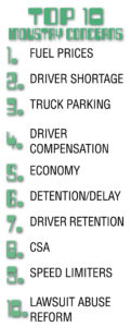 “ATRI’s list is a true reflection of what it was like to be a trucker this year,” said Harold A. Sumerford Jr., ATA chairman. “High fuel prices and finding drivers were two of our industry’s biggest challenges — challenges made more difficult by the economy and the continued lack of truck parking. Thankfully, ATRI doesn’t just tell us what the issues are, it provides a number of possible solutions that decision makers can use to address them.”