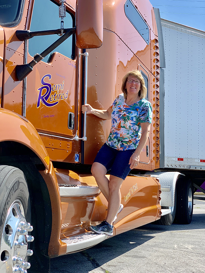 “We both had uncles that drove trucks in the ’70s, and that was attractive to us. We both looked up to (our uncles) with admiration, and I think it just imprinted on us at a young age,” she said. “My husband went on a few runs with his uncle, and my uncle would take my brother, who is a year younger. I was always envious because I never got to go on the trips. I could sit in his truck and hoot the horn, but my uncle always said the road was no place for a girl.”