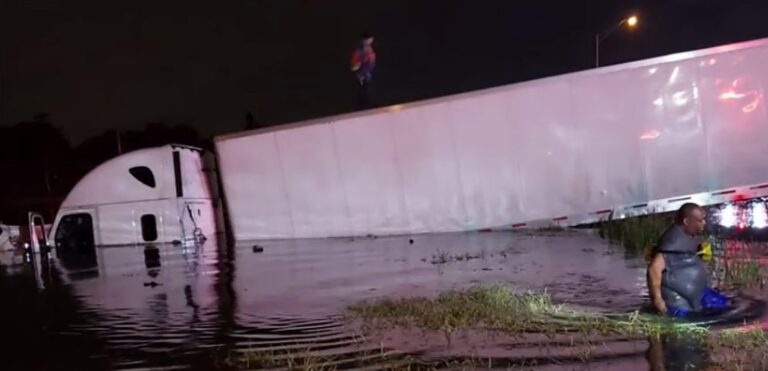 Driver OK after semi-truck crashes into retention pond The Trucker News Staff - December 17, 2019 A driver was rescued after his semi-truck hydroplaned off an exit at Florida’s Turnpike and wound up in a retention pond. Courtesy: WPLG Local 10