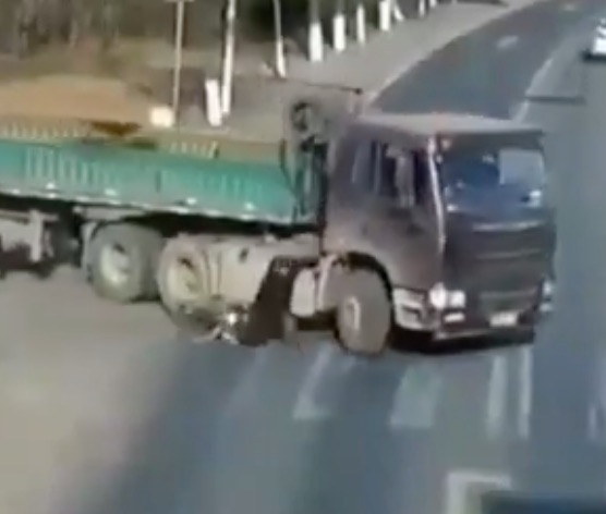 Semi vs bicyclist The Trucker News Staff - January 7, 2020 This could have been so much worse! Looks like this guy might have been surfing along side of the semi. Either way, he is lucky